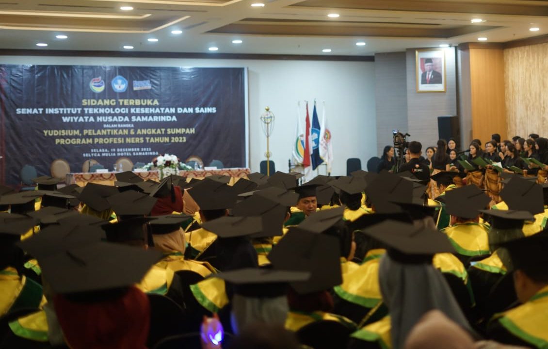 WartaJuara.com, Samarinda – ITKES Wiyata Husada Samarinda (ITKES WHS) menyelenggarakan acara Yudisium, Pelantikan, dan Pengucapan Sumpah Program Profesi Ners untuk 122 lulusan terbaiknya di Selyca Mulia Hotel Samarinda pada hari Selasa (19/12/2023).
