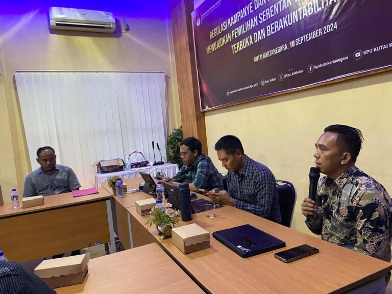 WartaJuara.com, Kukar – Komisi Pemilihan Umum (KPU) Kabupaten Kutai Kartanegara (Kukar) menyelenggarakan Rapat Koordinasi (Rakor) terkait persiapan kampanye dan pengelolaan dana kampanye menjelang tahapan Pemilihan Kepala Daerah (Pilkada) 2024. Rakor tersebut digelar pada Rabu (18/9/2024) malam di ruang rapat lantai II Kantor KPU Kukar.